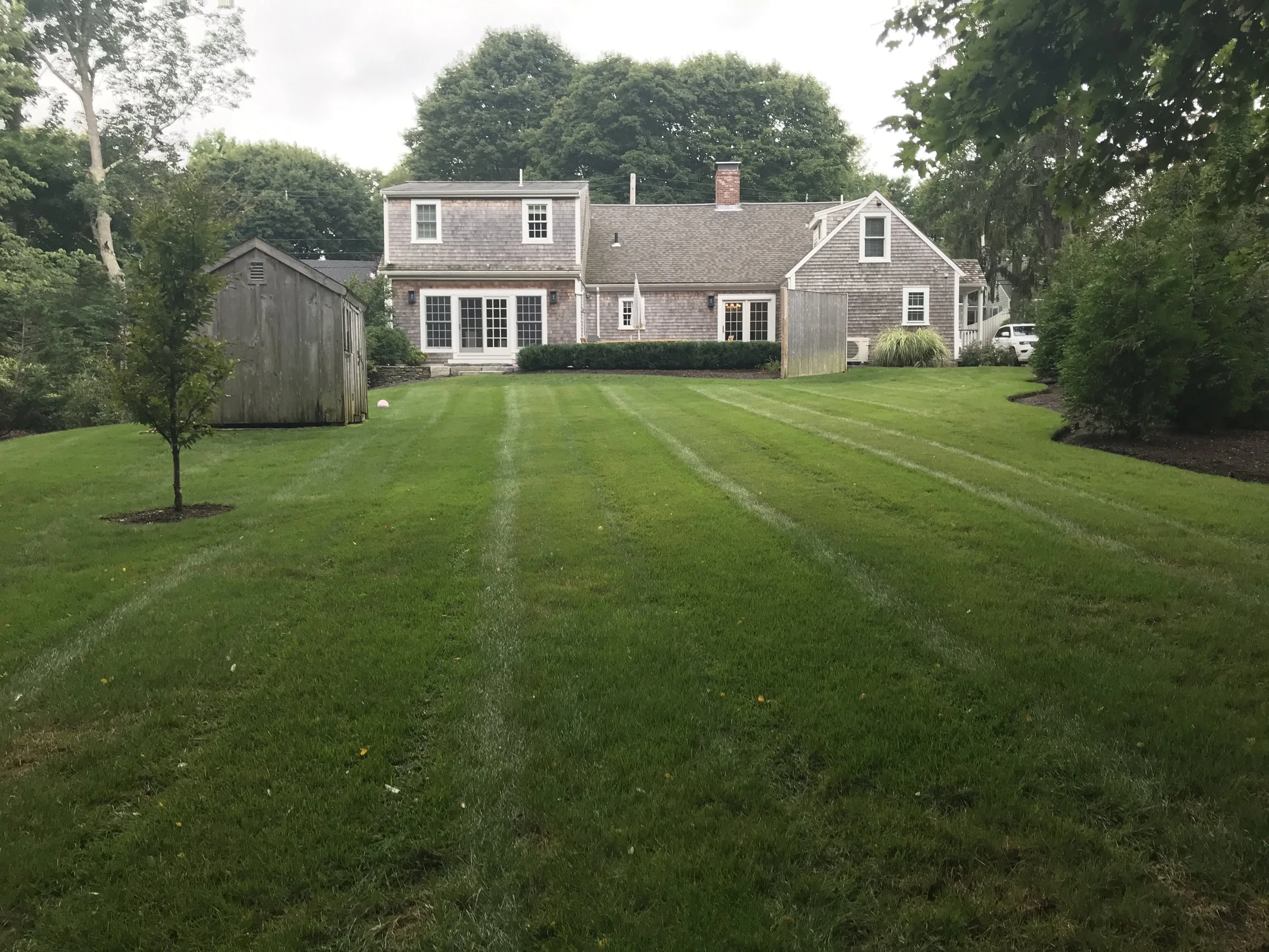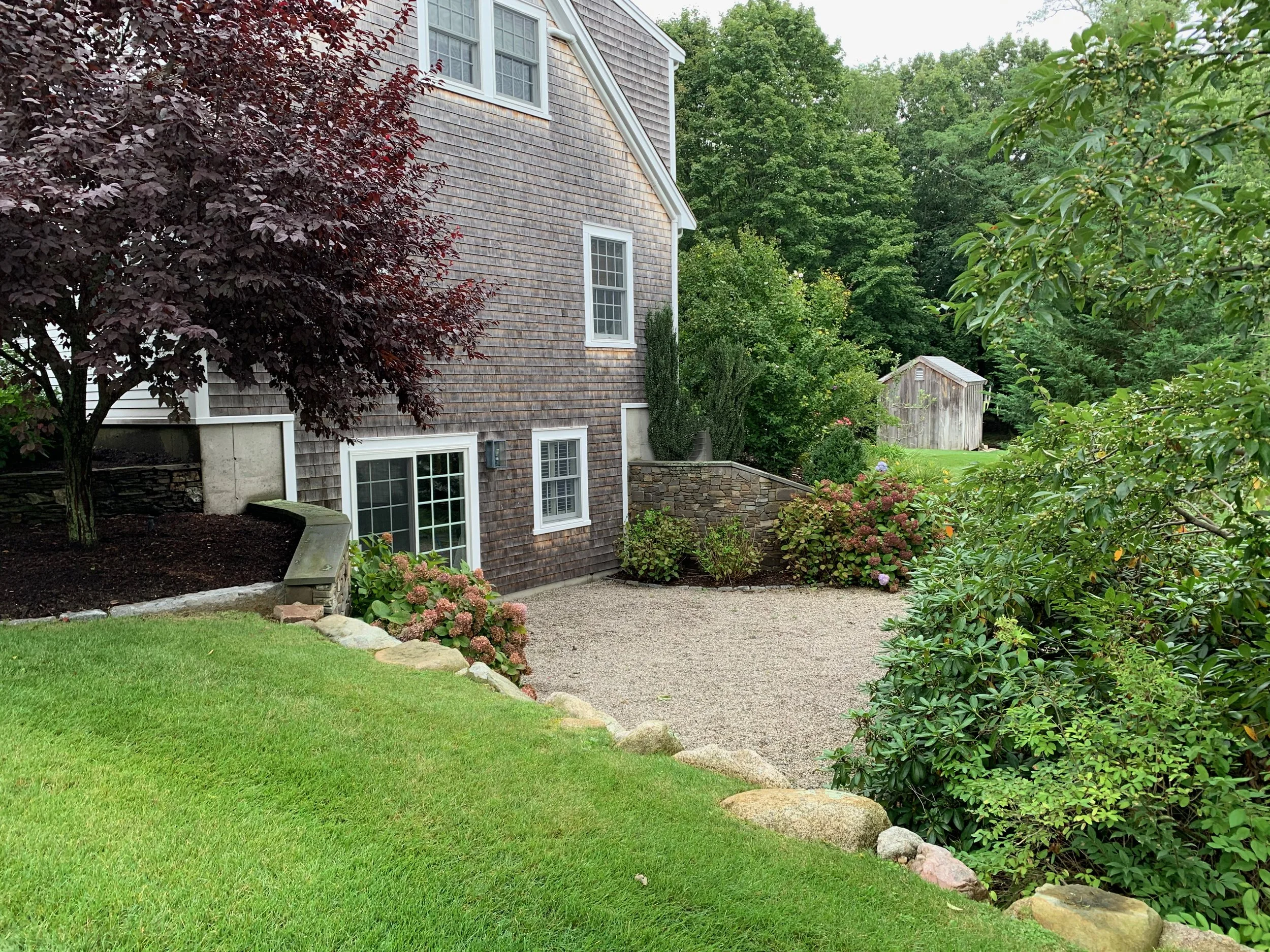 Modern life in an antique Cape house offers a warm lifestyle with clean lines and ancient materials. Granite from nearby quarries mix beautifully with the slim trunks of birches and frothy blooms of Catmint. Add a dash of chartreuse grass, among the black and white accents and its as fresh as a Mojito!