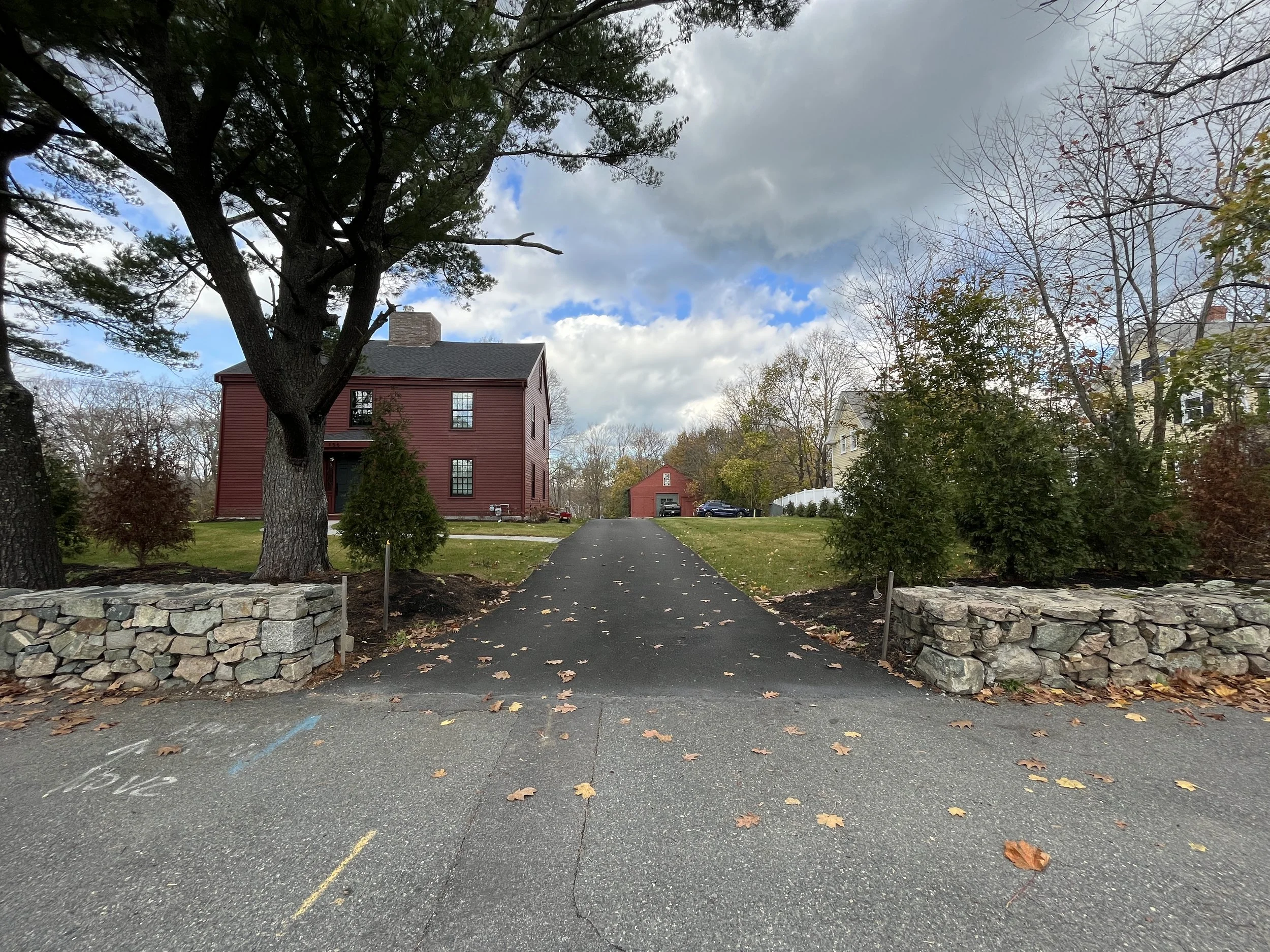 The front entrance to the property was delineated with fencing, cobblestone details and two beautiful stone pillars.
